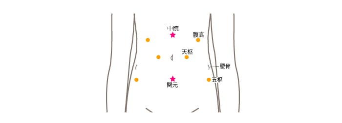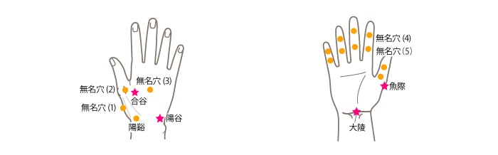 委中から上に指5本、外側に指1本、筋肉谷間の凹み
